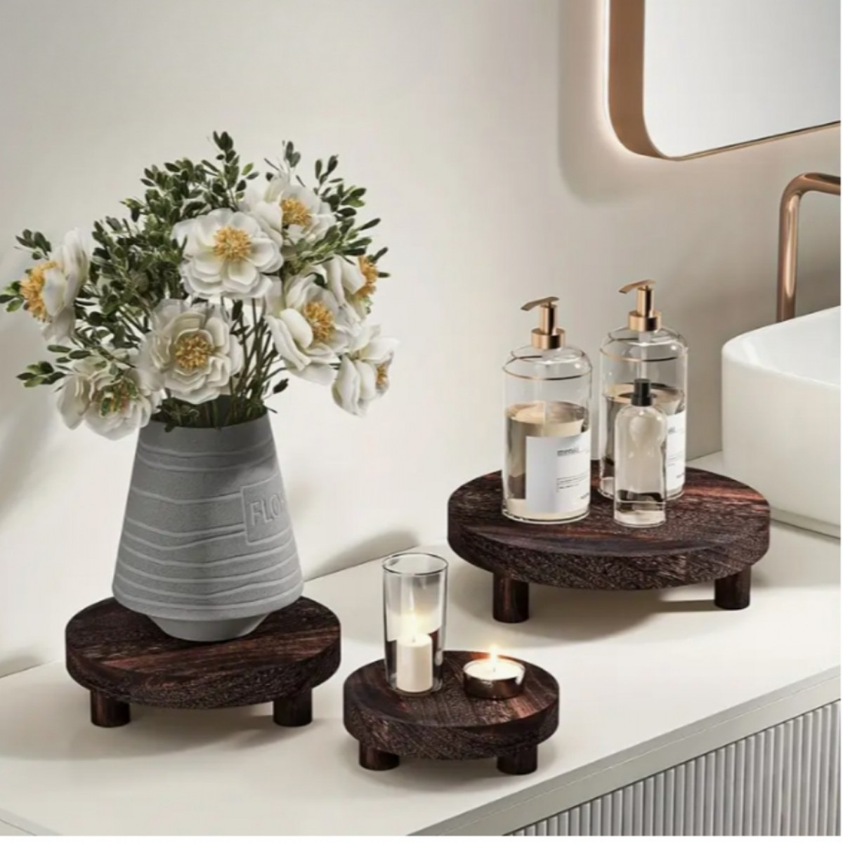 3 Adet Farklı Ebatlarda Rustik Ahşap Kek Standı,Banyo ve Ev Dekoru